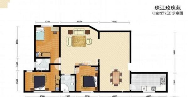 2. [Huxing structure]: Two rooms facing north, one room facing south, all with balcony, large living room, comfortable living.